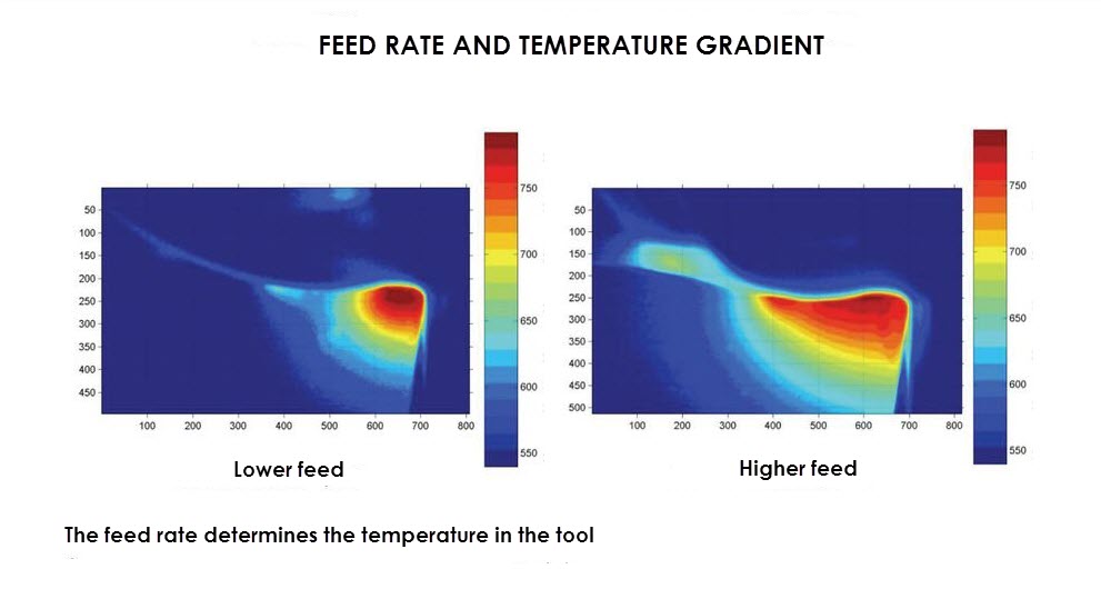 Khi đưa dao vào ở độ dày tối đa trong phay xuôi, dao cụ chịu tải cơ nặng, nhưng đối với hầu hết các vật liệu làm dao cắt, điều này không phải là vấn đề lớn. Dao cắt hiện đại bao gồm dao hợp kim carbide, gốm và thép gió là sản phẩm gốc bộ có cường độ nén tốt. Khi nói đến chiến lược đưa dao cắt vào phôi và vị trí dao cắt, thợ máy nên lưu ý rằng luôn đặt vị trí dao cắt từ bên này sang bên kia theo đường tâm phôi. Vị trí trung tâm kết hợp lực phay xuôi và phay ngược có thể làm máy bị rung và không ổn định.