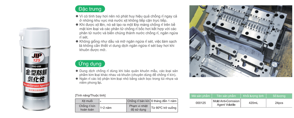 - Chất chống gỉ sẽ bay hơi khi mở khuôn nên khác với dầu chống gỉ và mỡ bôi trơn thì không cần rửa sạch.